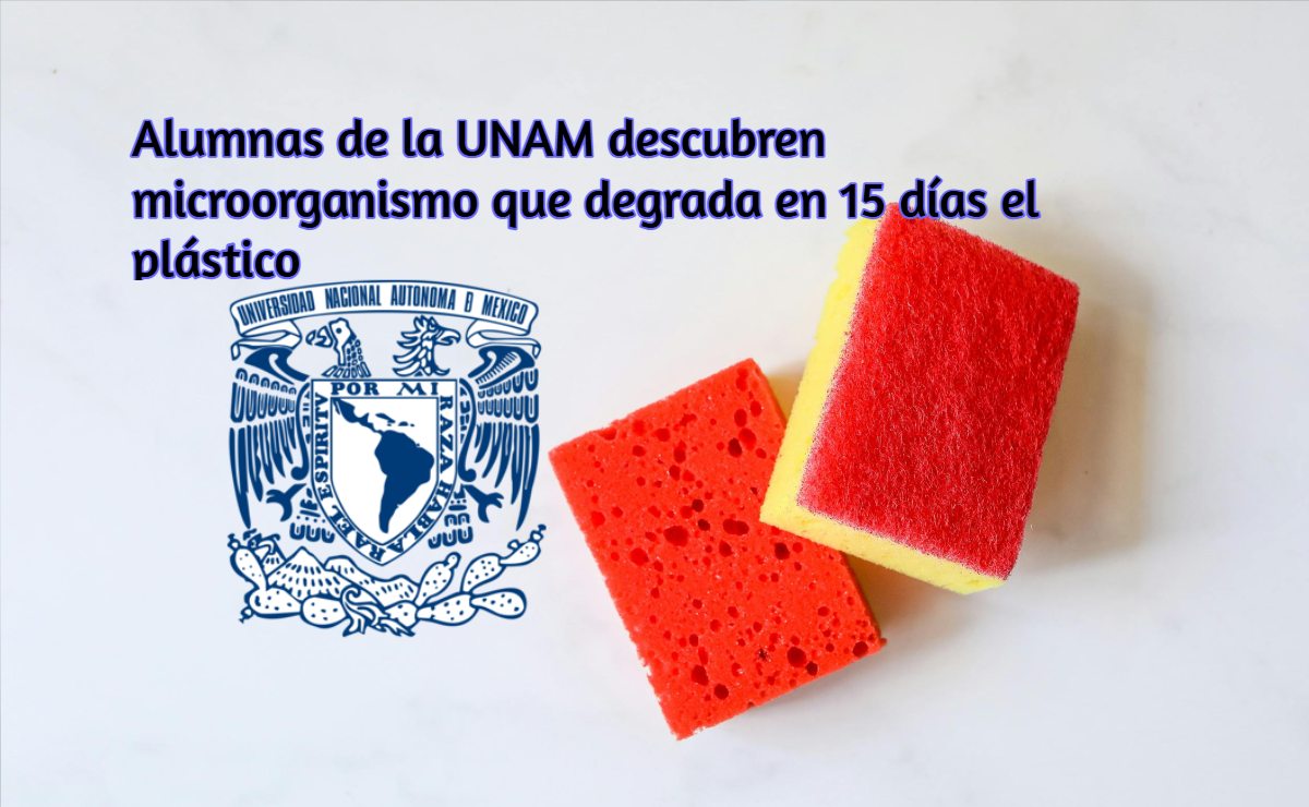Alumnas de la UNAM descubren microorganismo que degrada en 15 días el plástico. Imágenes: Pexels/Seeklogo